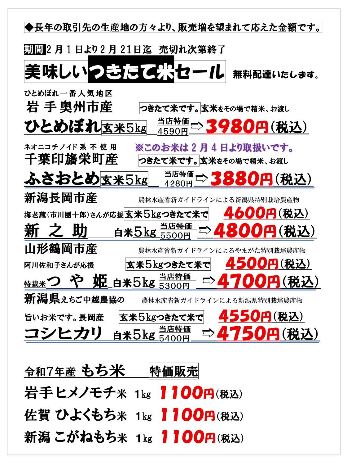 お米の店 あづま食糧のお米は、 ![]() と があります。 当店は、お客様の生の声をお聴ききしながら、商って行きたいと考えます。 つきましては、お問合せ・ご注文は電話にてお願いいたします。 ![]() |